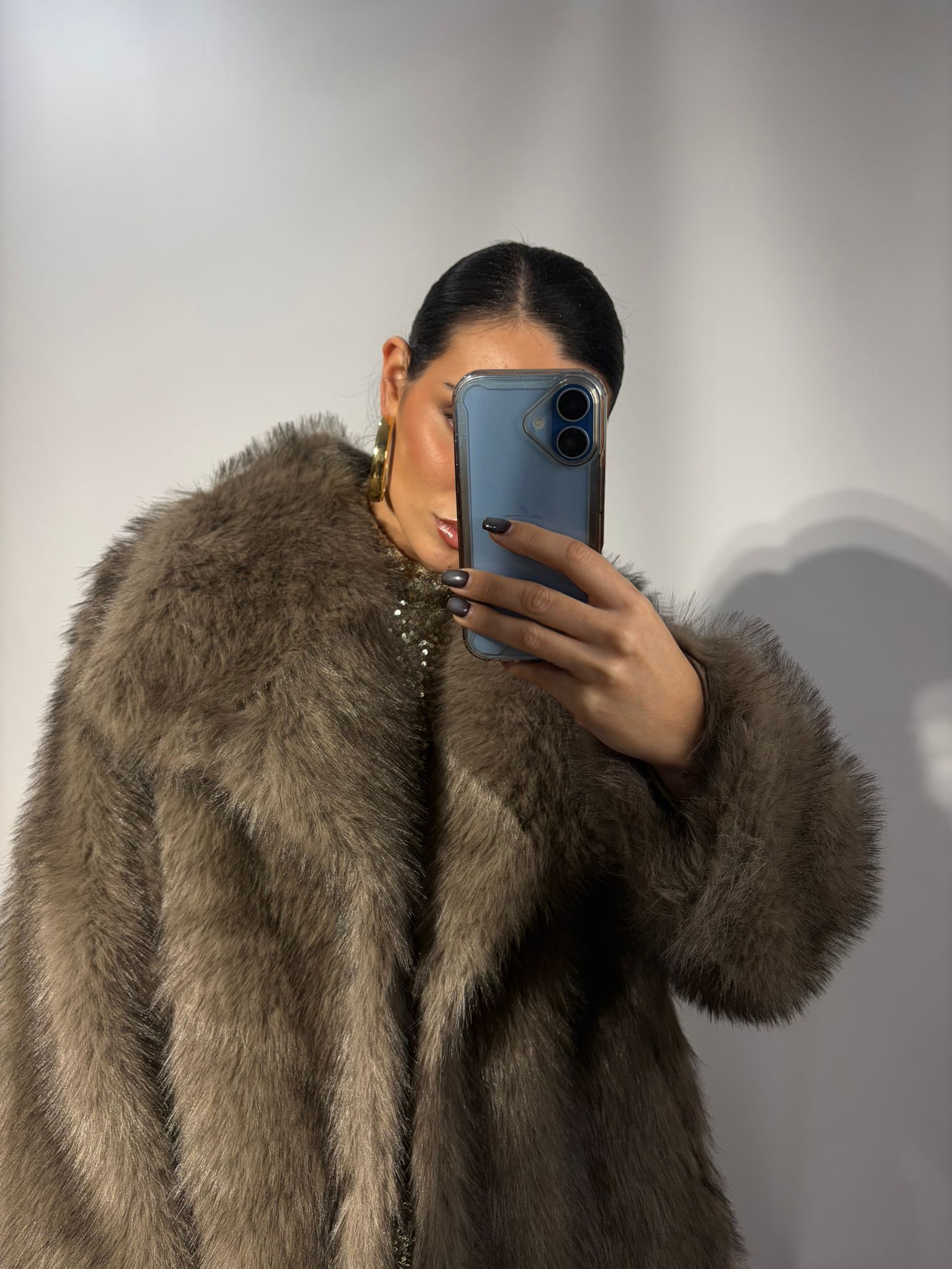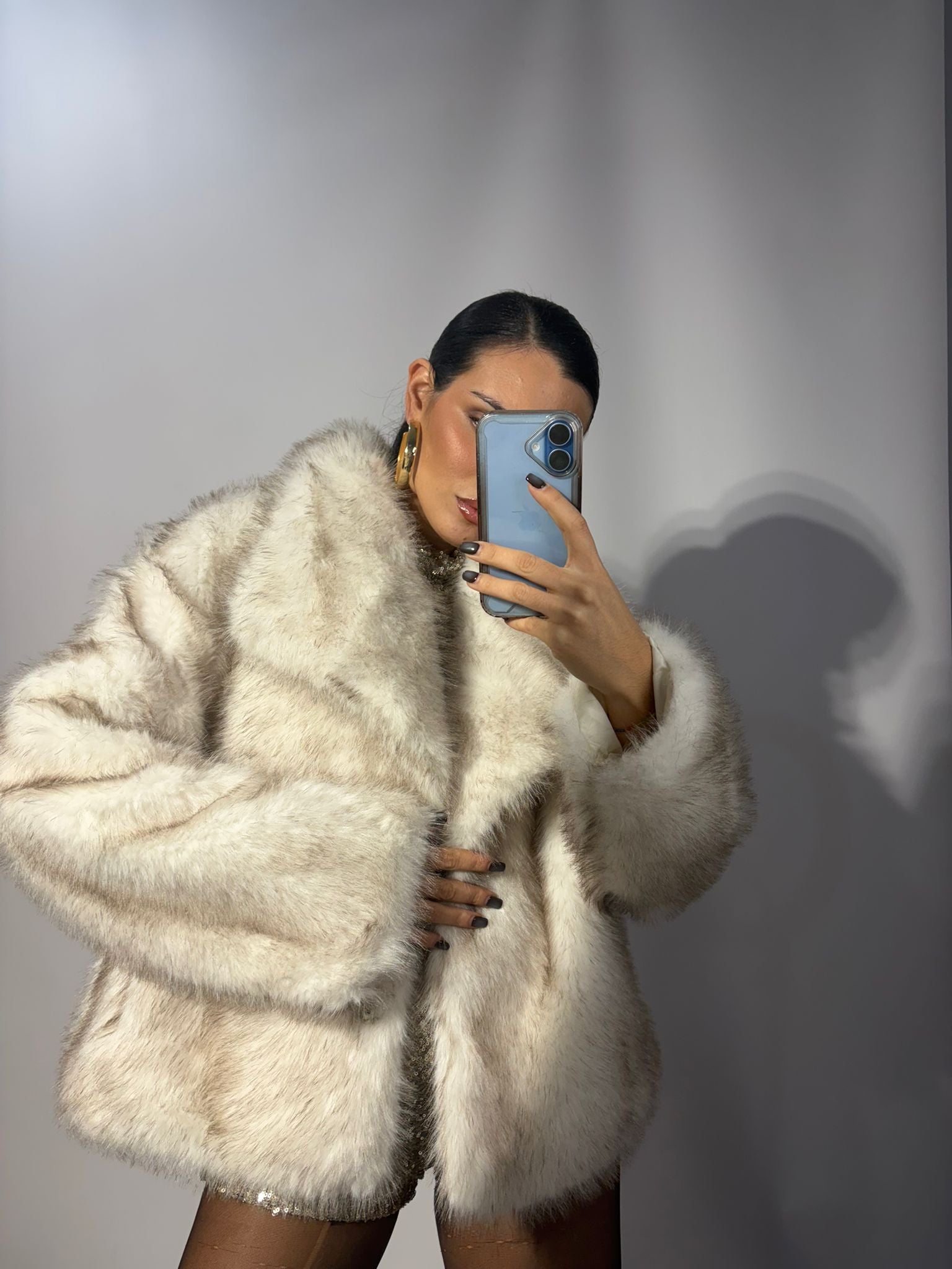 Abrigo efecto pelo con cuello solapa y manga larga, Bolsillos delanteros. Forro interior a tono. Cierre frontal con botones metálicos.